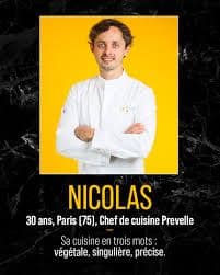 Parmi les candidats installés dans la capitale, Nicolas Parage se distingue par sa cuisine très engagée autour du végétal. Il est le chef du restaurant Prévelle, une adresse qui met à l’honneur les légumes et les produits de saison.
